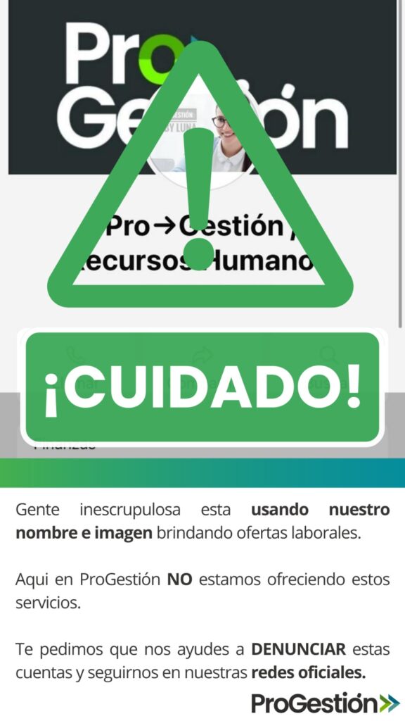 Pro Gestión se preocupa profundamente por la seguridad y la confianza de nuestros clientes. Por ello, les recordamos que nuestras comunicaciones oficiales y cuentas de redes sociales verificadas son las siguientes: